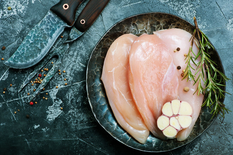 Chicken breast, especially when cooked without the skin, is high in protein and low in calories, fat, and sodium. It’s also an excellent source of selenium, niacin, and vitamin B6.